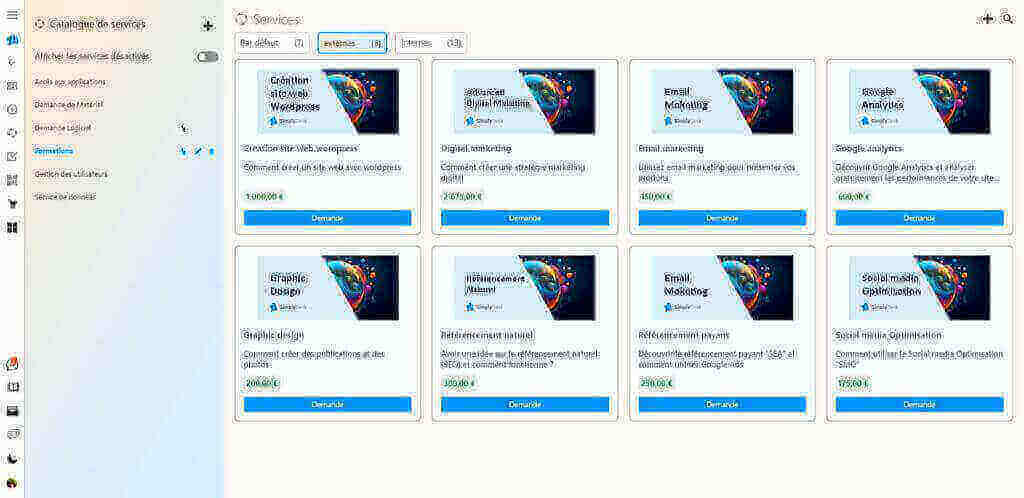 Le Catalogue de Service offre une visibilité claire sur l’ensemble des services informatiques disponibles. Cela permet aux utilisateurs de comprendre rapidement les options disponibles et d’accéder aux informations détaillées sur chaque service.