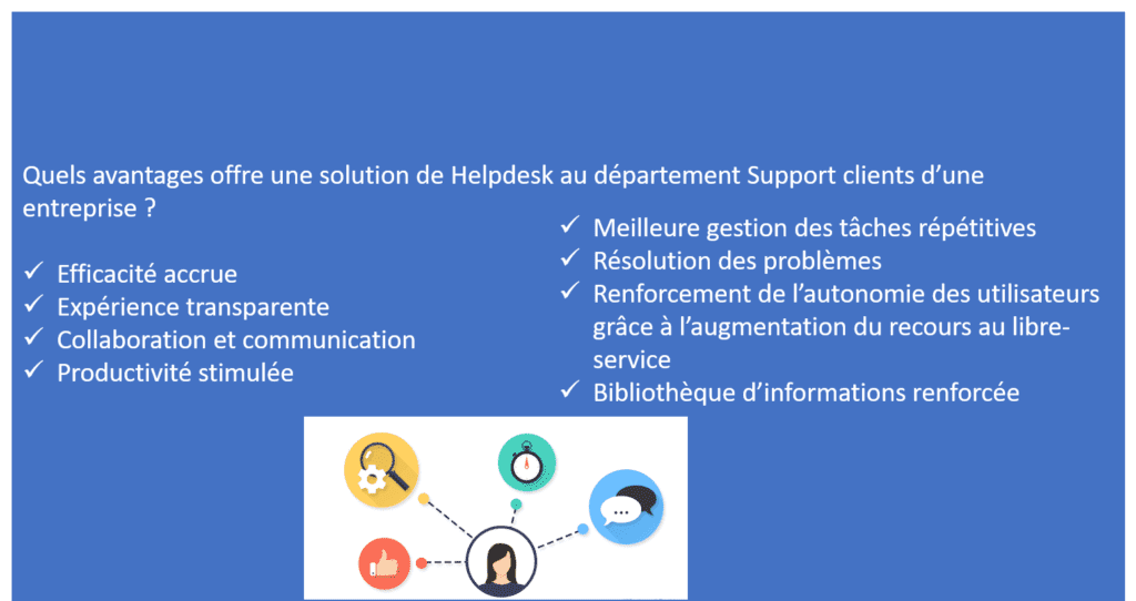 Au cours des dernières décennies, les solutions logicielles helpdesk se sont multipliées, ce qui a permis et donné l’envie aux entreprises d’établir un service support utilisateurs (Helpdesk) efficace. Afin de comprendre comment l’optimisation de son Helpdesk améliore l’expérience client, il est important de clarifier le rôle de celui-ci. En effet, Il n’est pas toujours évident de résumer les avantages d’un bon HelpDesk pour ses clients. Un bon HelpDesk a un impact conséquent et positif sur les employés, ces impacts contribuent également grandement à satisfaire et à fidéliser les clients.