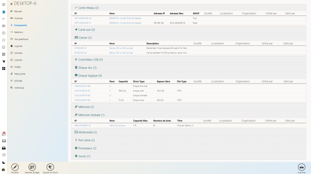 Sans agent à déployer, le logiciel détectera automatiquement les équipements et les composants matériels et logiciels installés.