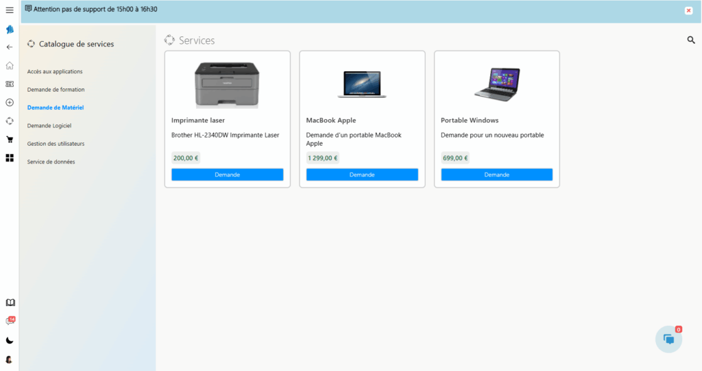 Le catalogue de service outil helpdesk de SimplyDesk permet aux entreprises de formaliser, structurer et publier l’ensemble des services informatiques disponibles pour les utilisateurs internes ou externes. Il constitue un point d’entrée centralisé pour la gestion des tickets IT, la planification des tâches ITSM, et le suivi des demandes selon les SLA IT définis.