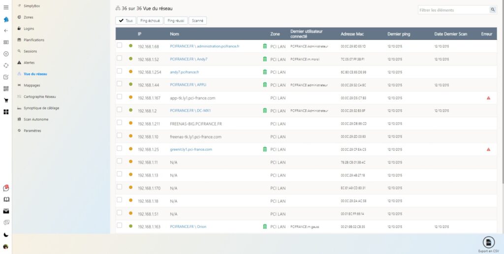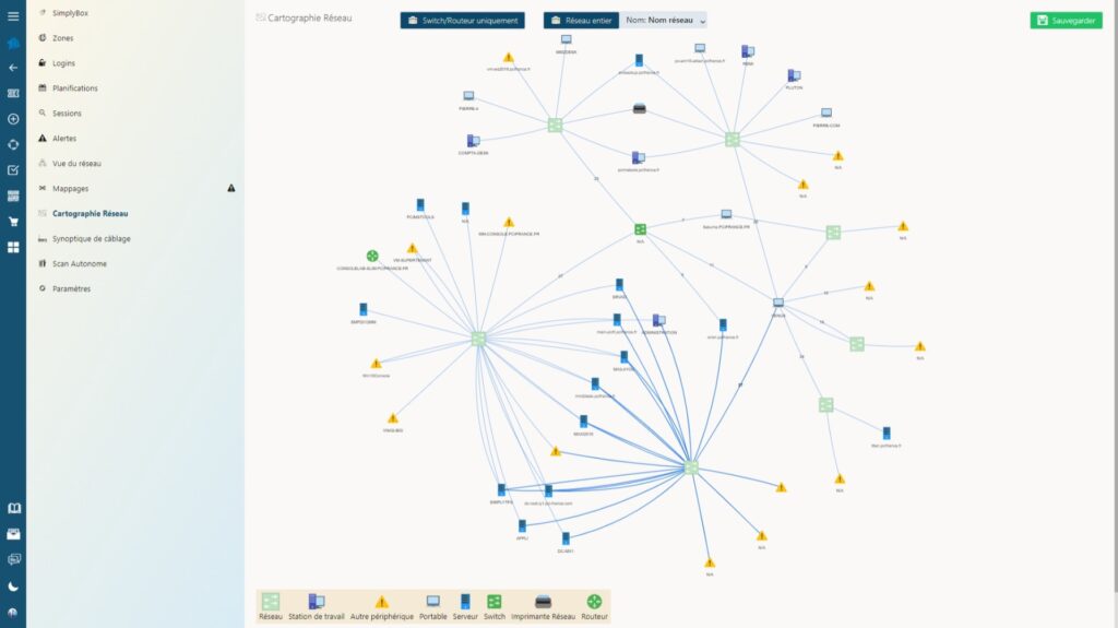 Détection automatique des PC et équipements SNMP connectés sur réseaux LAN / WAN.